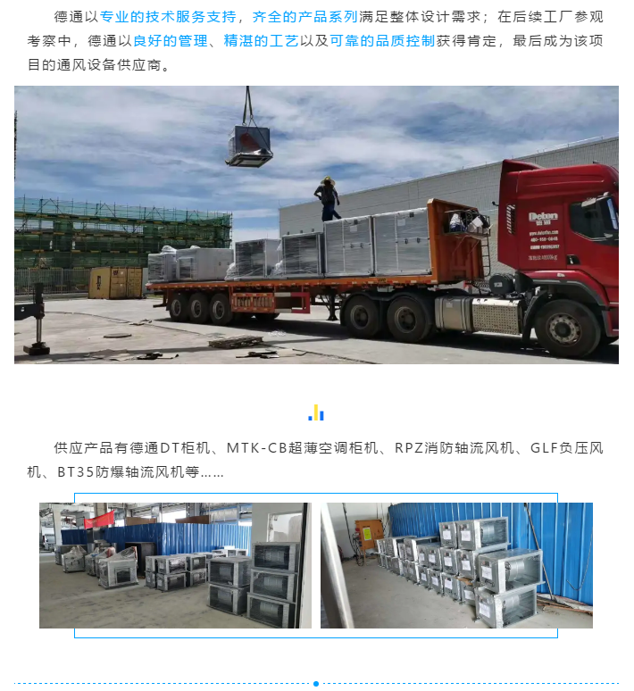 日前,德通風(fēng)機(jī)正分批送達(dá)廣東江門某日資企業(yè),主要用于該企業(yè)新建廠房建筑通風(fēng)及崗位功能用途,整批訂貨量達(dá)200多臺(tái)。