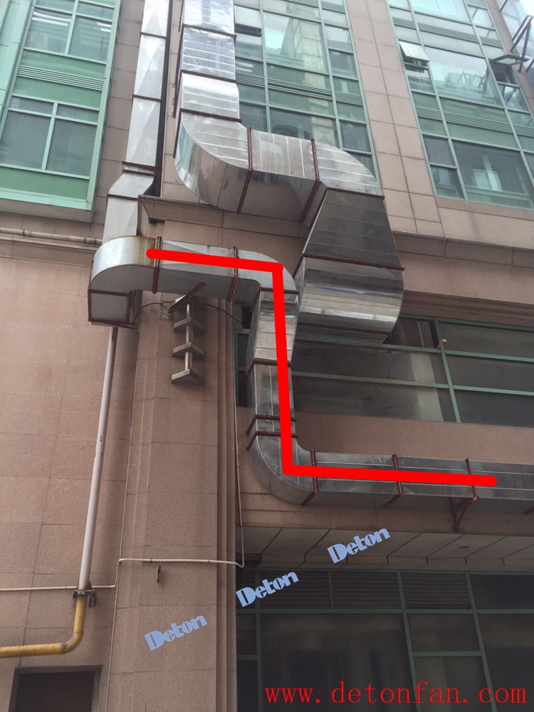 下圖在安裝中,排煙風(fēng)管呈Z字型